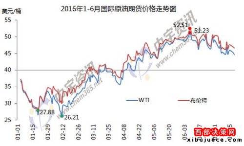 1-6月國際原油期貨價格走勢圖。來源:中宇資訊。