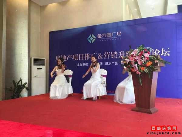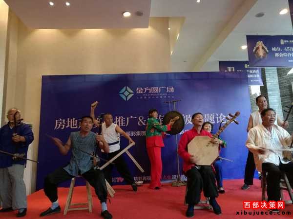 由陜西麗彩實(shí)業(yè)集團(tuán)、陜西漢水廣告文化傳媒有限公司、《陜西房產(chǎn)》共同主辦的“房地產(chǎn)項(xiàng)目推廣與營(yíng)銷升級(jí)主題論壇”,于2016年9月8日下午在咸陽(yáng)金方圓廣場(chǎng)項(xiàng)目營(yíng)銷中心圓滿舉辦。論壇第一輪嘉賓對(duì)話結(jié)束后,主辦單位邀請(qǐng)了華陰老腔藝術(shù)團(tuán)成員、華陰籍姑娘屈玄登臺(tái)獻(xiàn)歌。(見下圖)