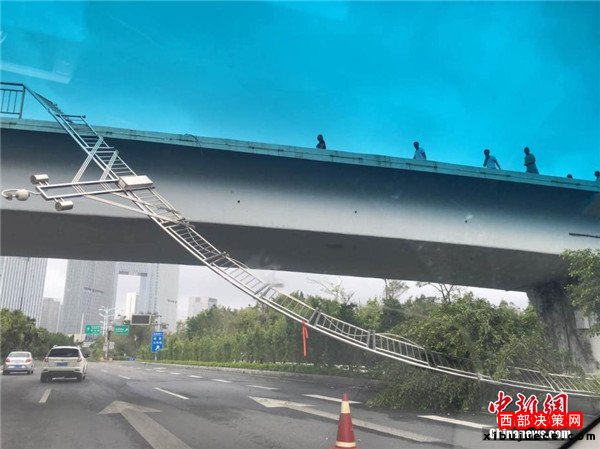 廈門(mén)一座人行天橋橋欄被吹下。