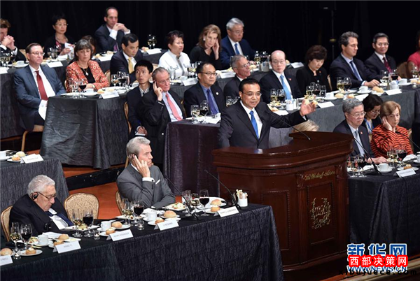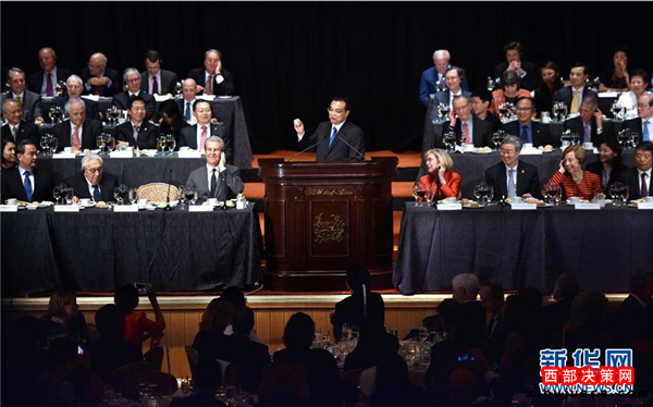 李克強出席紐約經(jīng)濟俱樂部舉行的歡迎宴會并致辭和回答提問