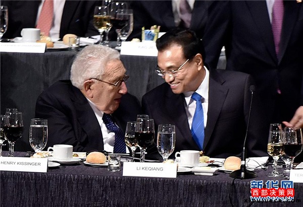 李克強表示,基辛格博士45年前訪華時,中美貿(mào)易幾乎為零。45年后的今天,中美貿(mào)易額占全世界貿(mào)易總量的五分之一,中美經(jīng)濟總量之和占世界經(jīng)濟總量的三分之一。我們的貿(mào)易和投資量如此之大,自然難免有分歧摩擦,但我們之間的共同利益遠大于誤解和分歧。我們正在進行的雙邊投資協(xié)定談判就是向兩國工商界發(fā)出中美進一步擴大相互開放和投資的積極信號。希望美方采取務實靈活態(tài)度,與中方共同努力達成高水平、互利共贏的雙邊投資協(xié)定。兩國可以通過更多貿(mào)易與人員往來,坦誠溝通,增進理解與互信,推動中美關系朝著穩(wěn)定向好的方向繼續(xù)前行。