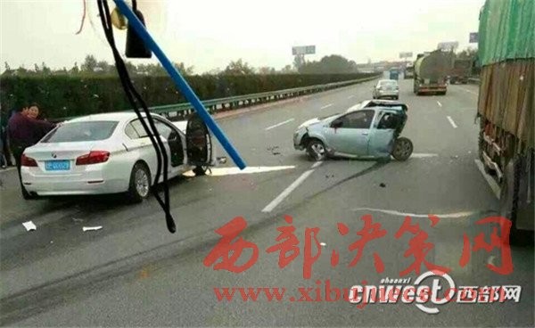10月16日下午5點(diǎn)左右,西寶高速楊凌西至扶風(fēng)絳帳段,一輛牌照為甘EQ0029的白色寶馬小轎車與其前方行駛的一輛陜AJ835R的銀色比亞迪轎車發(fā)生追尾事故,事故造成比亞迪轎車內(nèi)乘坐的4人當(dāng)場(chǎng)死亡,寶馬轎車內(nèi)一人經(jīng)送醫(yī)院搶救無(wú)效死亡,車禍現(xiàn)場(chǎng)慘烈。