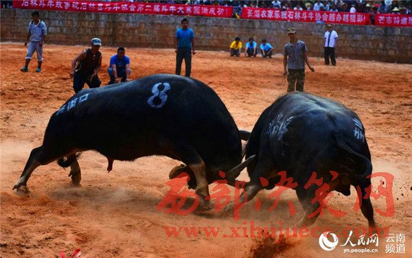 斗牛是石林縣最具民族特色的項(xiàng)目之一,已和當(dāng)?shù)匾妥迦嗣裣喟榱藬?shù)千年,石林很多村莊都會(huì)舉辦斗牛比賽。對(duì)彝族人民來(lái)說(shuō),斗牛可以帶來(lái)紅火、吉祥,具有有很深的價(jià)值寓意。