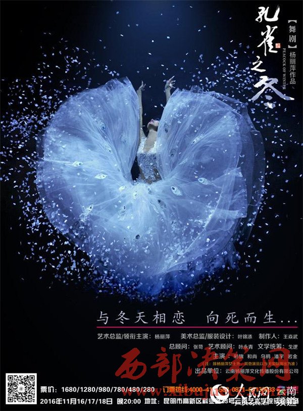 10月25日,由楊麗萍領(lǐng)銜主演并擔(dān)任藝術(shù)總監(jiān)的舞劇《孔雀之冬》在中航·璽樾舉行全球發(fā)布會(huì)?!犊兹钢穼⒂?1月16日至18日在云南藝術(shù)學(xué)院實(shí)驗(yàn)劇場(chǎng)(麻園)進(jìn)行公演,拉開全國(guó)巡演的序幕。時(shí)隔4年,在2012版舞劇《孔雀》之后,舞神楊麗萍將再次起舞。