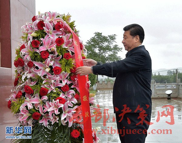 2016年7月18日至20日,中共中央總書(shū)記、國(guó)家主席、中央軍委主席習(xí)近平在寧夏調(diào)研考察。這是7月18日上午,習(xí)近平在固原市西吉縣將臺(tái)堡向紅軍長(zhǎng)征會(huì)師紀(jì)念碑敬獻(xiàn)花籃。新華社記者李濤攝