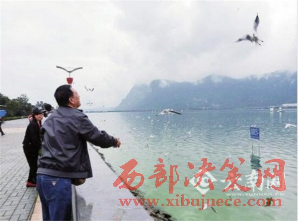 在海埂大壩邊上,記者看到200余只紅嘴鷗出現(xiàn)在這里,靠近岸邊從游客手中覓食,而游客投喂的是面包,這里還沒有鷗糧出售。負責(zé)海埂大壩管理的有關(guān)人士說:“我們設(shè)有觀察員,今天紅嘴鷗首次靠岸,下周開始,我們將推出鷗糧銷售。”