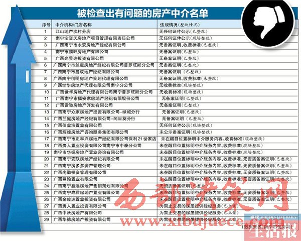南寧市住房局通報房地產(chǎn)中介專項執(zhí)法檢查結(jié)果