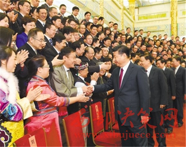 上午9時30分,習(xí)近平等來到人民大會堂金色大廳,同代表們親切握手,并合影留念。
