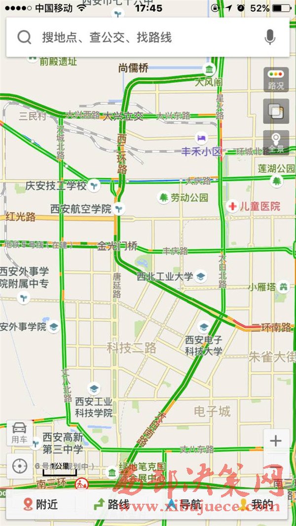 昨天下午晚高峰期,西安幾個著名堵點都顯示一路暢通