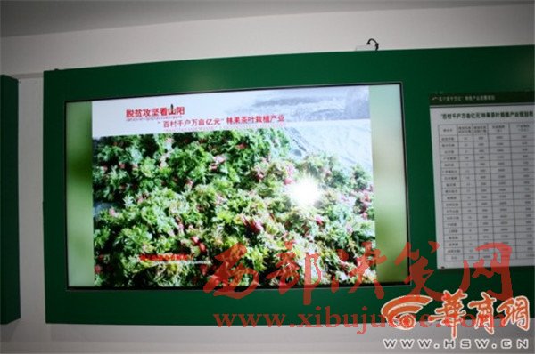 在山陽扶貧開發(fā)局辦公場所走廊,一側(cè)墻上安裝有6臺液晶電視看上去很顯眼,滾動播放著扶貧圖片和相關數(shù)據(jù)。