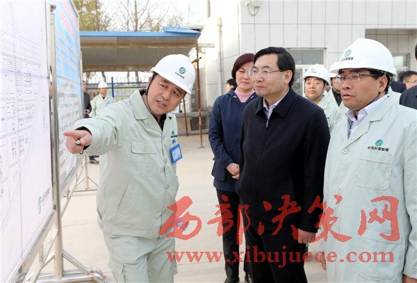 11月19日,省長(zhǎng)胡和平(右二)在陜西華浩軒公司視察調(diào)研,右一為中陜核集團(tuán)董事長(zhǎng)張斌成,左二為永壽縣委書記蘇曉梅。