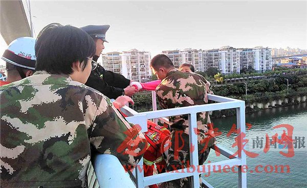 此時,阿建已經(jīng)趕到橋頭,民警立即讓他先在遠處等候,不要讓阿婷看見。通過阿建提供的電話號碼,民警聯(lián)系上了阿婷的父親,把電話撥通之后遞給阿婷,由其父親進行勸說。此時,在旁的消防官兵綁好救生繩索開始伺機出手。