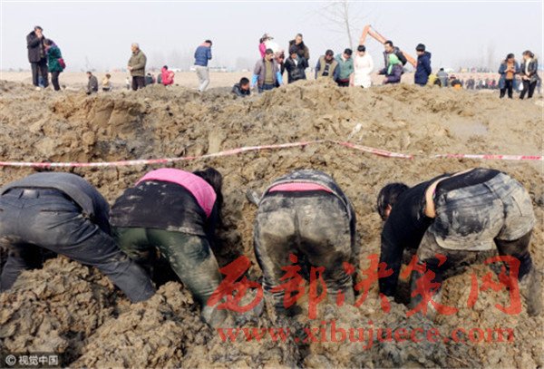 當(dāng)天中午12點(diǎn),中牟縣警方、文物所抵達(dá)現(xiàn)場(chǎng),拉起了警戒線,對(duì)“挖寶”村民進(jìn)行了疏散。
