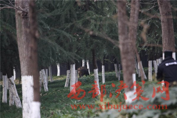 12月7日,安徽合肥,體重近200斤的成年野豬,出現(xiàn)在合肥市包河區(qū)政府大樓院內(nèi),民警兩次鳴槍,合肥市動(dòng)物園工作人員吹了3針麻醉,“二師兄”愣是不倒。下午15時(shí),包河區(qū)行政中心車來車往,前來辦事的群眾擠滿大廳,很多人并不知道,一只野豬就在附近溜達(dá)。“區(qū)政協(xié)一位女領(lǐng)導(dǎo)最先看到,上午7點(diǎn)多,就在國(guó)稅局后邊的綠化帶里頭。我也看到了,拿東西攆,它就往西頭跑。跟同事們說,都不相信我,講區(qū)政府怎么可能出現(xiàn)野豬。”物業(yè)師傅一臉認(rèn)真,恨不得用手在空中畫出野豬的模樣,“我是農(nóng)村過來的,那就是野豬,嘴巴又尖又長(zhǎng)的嘛。”上午等保安們反映過來,野豬已經(jīng)不知所蹤,大家便不了了之。結(jié)果下午1時(shí)許,大家伙又出現(xiàn)了。“先在綠化帶里曬太陽,被我們趕到包河區(qū)檢察院院子里,接著又跑到區(qū)政府東邊的綠化帶里。”