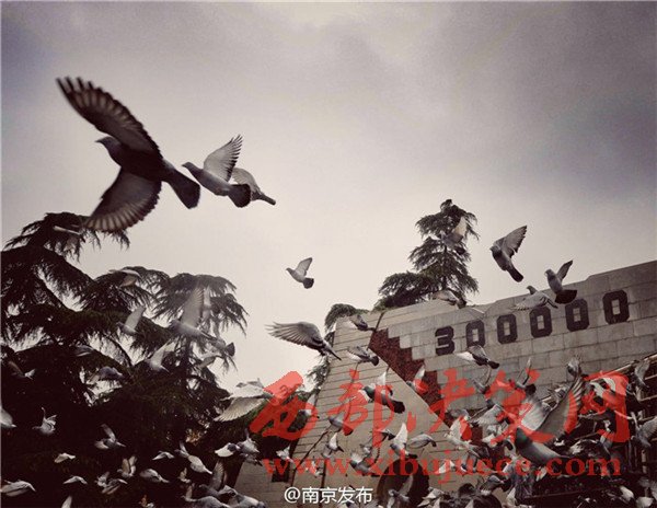12月13日,3000羽和平鴿在公祭儀式現(xiàn)場(chǎng)振翅飛翔。