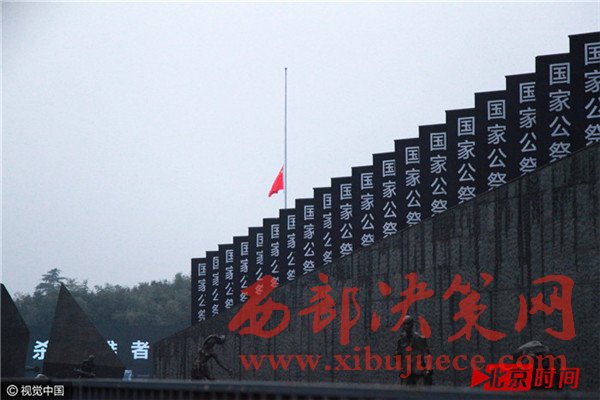 公祭現(xiàn)場(chǎng):升國(guó)旗和下半旗儀式舉行