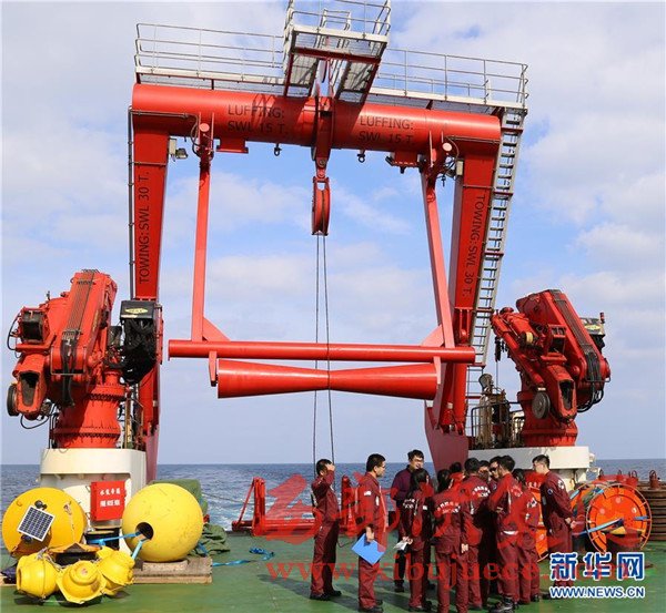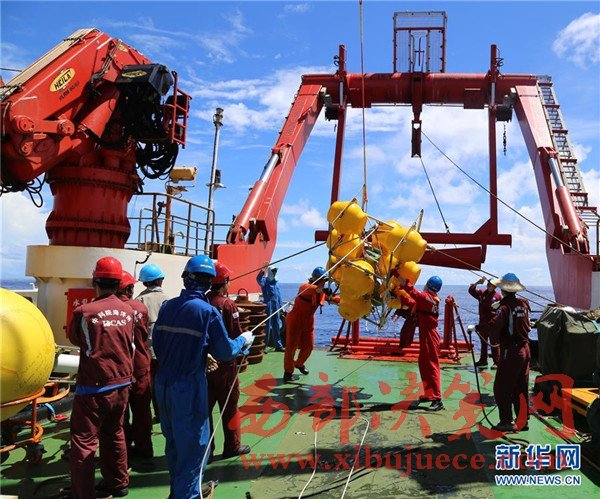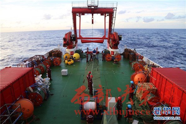 科考隊(duì)員在回收觀測(cè)設(shè)備(12月3日攝)。我國遠(yuǎn)洋綜合考察船“科學(xué)”號(hào)正在西太平洋執(zhí)行潛標(biāo)觀測(cè)網(wǎng)維護(hù)與升級(jí)任務(wù)。截至目前,科考隊(duì)員已獲取了140余件觀測(cè)設(shè)備連續(xù)1年的現(xiàn)場(chǎng)數(shù)據(jù),維護(hù)了8套深海潛標(biāo),并重新布放至西太平洋海域。