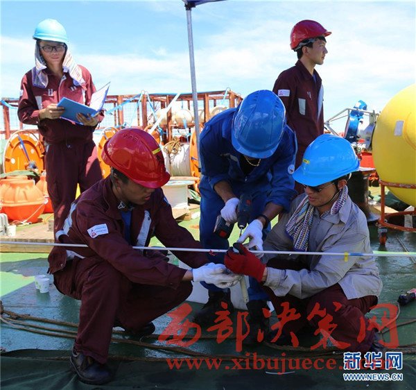 科考隊(duì)員從纜繩上拆卸觀測(cè)設(shè)備(12月3日攝)。我國遠(yuǎn)洋綜合考察船“科學(xué)”號(hào)正在西太平洋執(zhí)行潛標(biāo)觀測(cè)網(wǎng)維護(hù)與升級(jí)任務(wù)。截至目前,科考隊(duì)員已獲取了140余件觀測(cè)設(shè)備連續(xù)1年的現(xiàn)場(chǎng)數(shù)據(jù),維護(hù)了8套深海潛標(biāo),并重新布放至西太平洋海域。