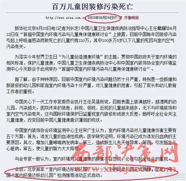 鐘南山在演講中引用了中國(guó)環(huán)境保護(hù)協(xié)會(huì)有關(guān)統(tǒng)計(jì)資料:90%白血病患兒家中曾進(jìn)行過豪華裝修,每年210萬兒童死于豪華裝修;80%的家庭裝修甲醛超標(biāo);70%孕婦流產(chǎn)和環(huán)境污染有關(guān);每年我國(guó)因室內(nèi)環(huán)境污染引起的死亡人數(shù)高達(dá)11.1萬人。室內(nèi)環(huán)境污染已經(jīng)成為嚴(yán)重影響現(xiàn)代人類健康的殺手之一。