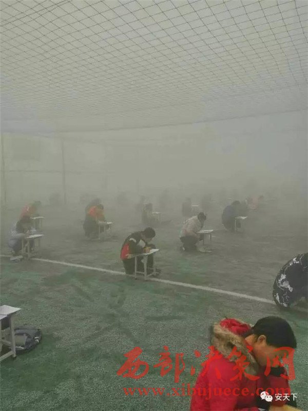 連日來(lái),安陽(yáng)地區(qū)空氣嚴(yán)重污染,空氣污染指數(shù)連續(xù)爆表,林州市教體局下發(fā)了全市中各中小學(xué)、幼兒園停課通知。然而,昨日上午,大河報(bào)記者接到林州市臨淇鎮(zhèn)一中學(xué)生家長(zhǎng)的投訴電話(huà)稱(chēng),在這種霧霾天氣,該校不僅沒(méi)有給孩子放假,還組織幾百名學(xué)生在操場(chǎng)上進(jìn)行考試。