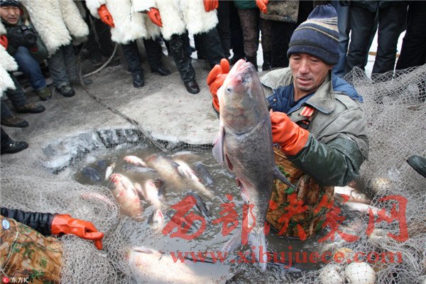 圖為冬捕現(xiàn)場(chǎng)