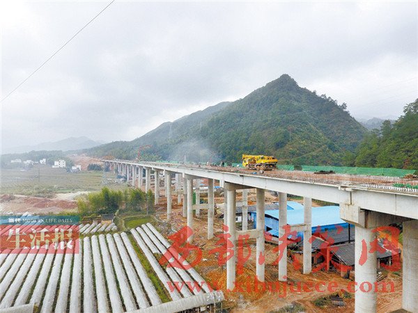 伴隨著機(jī)器的轟鳴聲,工程運(yùn)輸車輛來回穿梭,工人們正在緊張施工,在中鐵二十五局資興高速公路第五標(biāo)段施工現(xiàn)場,記者看到,一路上高速公路的高架橋與連成一線基本可以行車的路基不時出現(xiàn)在眼前,雖然部分路段還在做邊坡防護(hù)施工,橋梁還在做路面和護(hù)欄施工,整條高速公路已經(jīng)初具雛形。