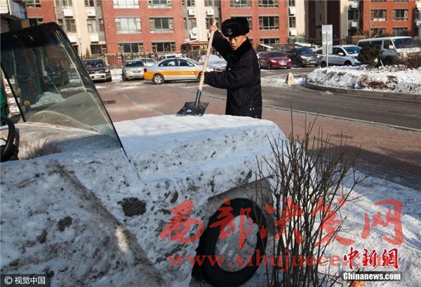 長春六旬保安造雪雕“敞篷車”吸引眼球