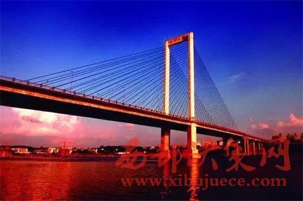 白沙大橋采用獨(dú)塔雙孔120米斜拉橋橋型,橋長2604米,猶如一條巨龍臥在邕江之上橋身安裝的1000多套各種景觀燈將光線直射邕江水面,營造出“橋水合一”如同仙境般的美景。
