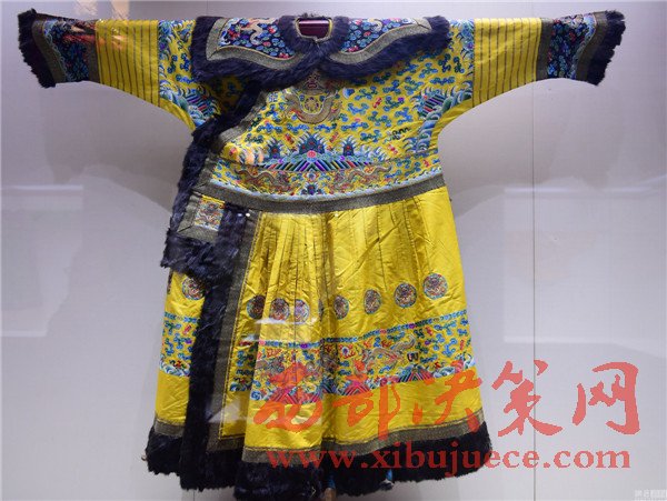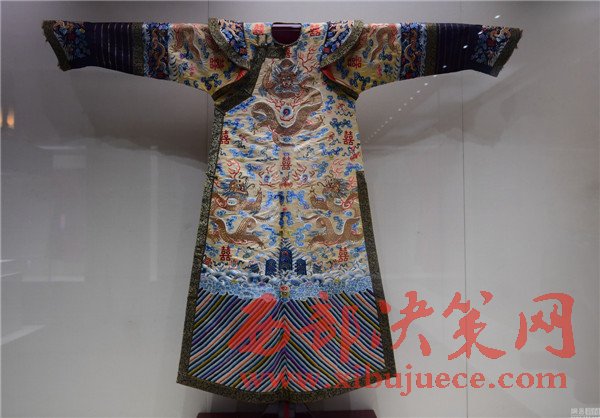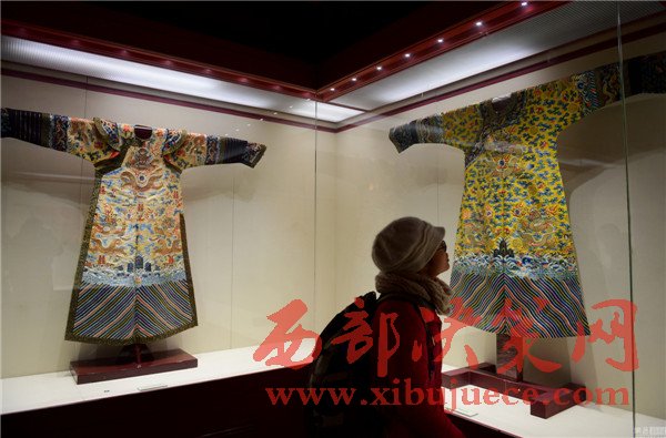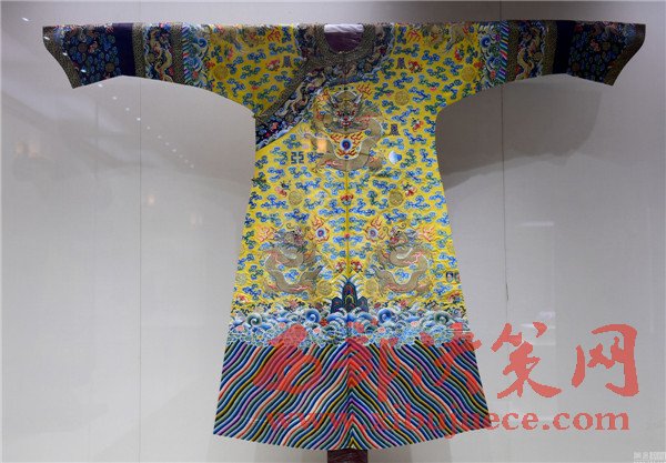 2017年01月05日,遼寧省沈陽(yáng)市,沈陽(yáng)故宮博物院舉行“錦繡華彩—院藏清宮織繡展”,清朝皇帝冬季朝袍首次亮相。沈陽(yáng)故宮是中國(guó)僅存的兩大古代皇家宮殿建筑群之一,為清朝初期努爾哈赤和皇太極的宮殿,距今近400年歷史,貯藏近20萬(wàn)件清宮御用物品和內(nèi)府秘籍。清明黃江綢繡金龍出鋒夾朝袍。