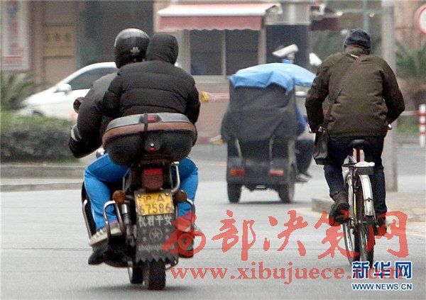 1月12日,反扒隊(duì)員乘坐摩托車跟蹤扒竊嫌疑人乘坐的電動三輪車。