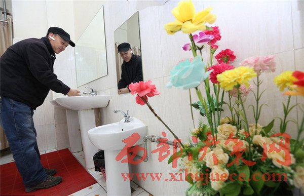 1月13日,西安,今年已經(jīng)55歲的孫躍榮正在廁所打掃衛(wèi)生,只要有人如廁過后,孫阿姨就會擦擦這拖拖那的,忙個不停。
