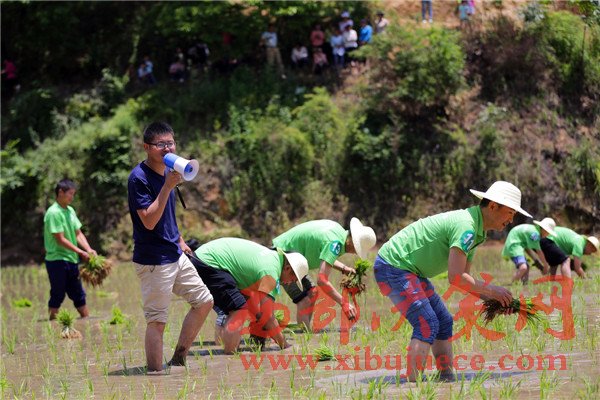 游客在寧陜海棠園村體驗(yàn)插秧
