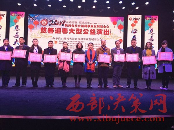 與此同時,晚會現(xiàn)場還舉行了榮譽理事長授證儀式,著名書法家林中陽、著名女高音歌唱家馮健雪等愛心人士,被陜西省社會福利事業(yè)發(fā)展基金會聘為名譽理事長。此外,晚會現(xiàn)場還新成立了孝文化專項基金委員會、醫(yī)療器械專項基金委員會、旗袍文化專項基金委員會、書畫文化專項基金委員會、裝飾文化專項基金委員會、大愛祈福專項基金委員會,并向這些新成立的專項基金委員會的代表現(xiàn)場授牌,同時也對優(yōu)秀志愿者進行了表彰。