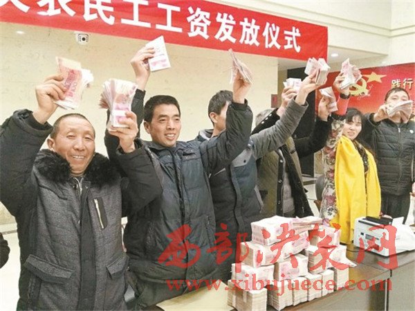 農(nóng)民工代表領到拖欠工資。