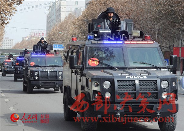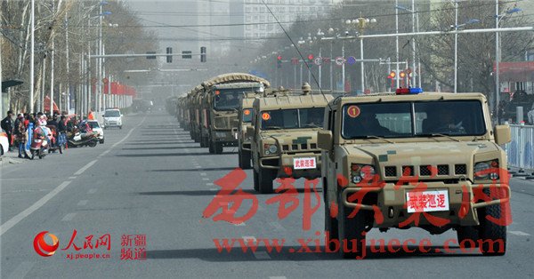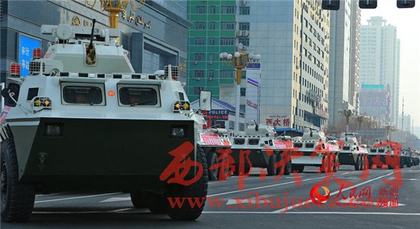 隨著一聲令下,戰(zhàn)士們登上戰(zhàn)車,警燈閃爍,警笛齊鳴,氣勢磅礴。一支威武之師、鋼鐵之師、正義之師吹響沖鋒號(hào),在烏魯木齊市主要街道和重點(diǎn)部位進(jìn)行武裝巡邏。
