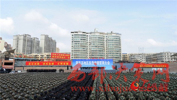 新疆維吾爾自治區(qū)反恐維穩(wěn)誓師大會(huì)現(xiàn)場。
