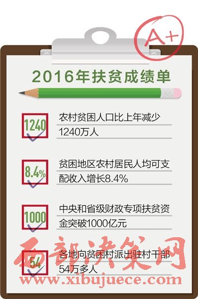 2016年,我國扶貧投入力度空前。財力投入上,中央和省級財政專項扶貧資金首次突破1000億元,其中中央財政667億元,同比增長43.4%。792個貧困縣啟動實施涉農資金整合試點,實際整合到位資金約2300億元,惠及建檔立卡貧困人口3000多萬人。各類金融機構加大扶貧支持力度,到2016年底,累計發(fā)放扶貧小額貸款2833億元,全國共有801萬貧困戶受益。人力投入上,各地共向貧困村選派駐村工作隊12.8萬個,派出駐村干部54萬多人。全國選派18.8萬名優(yōu)秀干部到貧困村和基層黨組織薄弱村擔任第一書記,提升帶動群眾脫貧能力。
