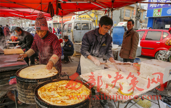 趕集餓了的鄉(xiāng)親們要一碗豆腐腦,二斤大餅,一家三口吃個(gè)飽飽的。