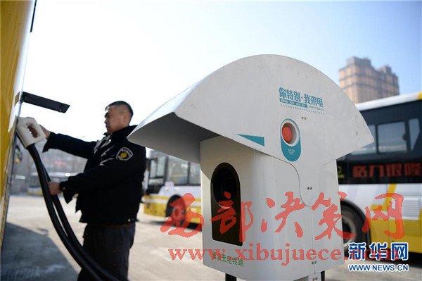 3月2日,一名公交車駕駛員在使用充電樁對公交車進(jìn)行充電。