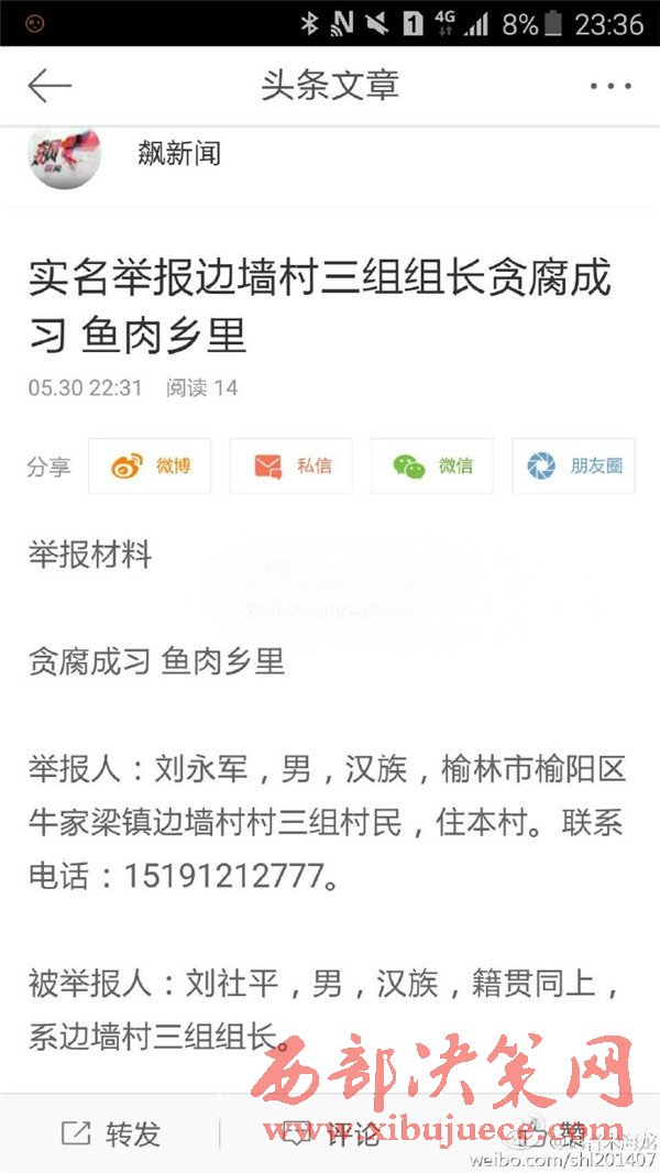 榆陽區(qū)牛家梁鎮(zhèn)邊墻村三組組長被實(shí)名舉報(bào)“貪腐成習(xí)魚肉鄉(xiāng)里”