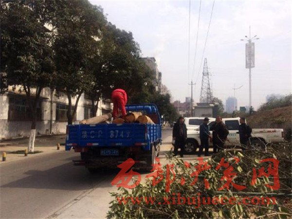 據(jù)了解,砍樹的人講這個(gè)地方要做工程,有人請他們把這些樹木砍了。所砍木料被賣給了木材加工廠,現(xiàn)場的車輛及裝車人員都是渭濱區(qū)高家村某木材廠的人員??硺洮F(xiàn)場未發(fā)現(xiàn)有市政和園林環(huán)衛(wèi)部門的管理人員。