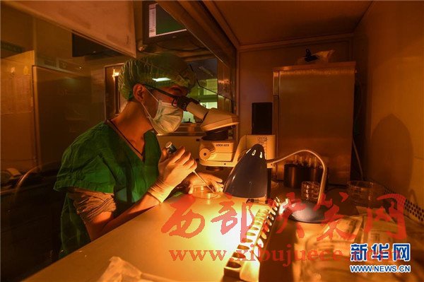 3月20日,廣醫(yī)三院胚胎實(shí)驗(yàn)室人員詹少泉在顯微鏡下?lián)斐龌颊呔栀?zèng)的卵子。