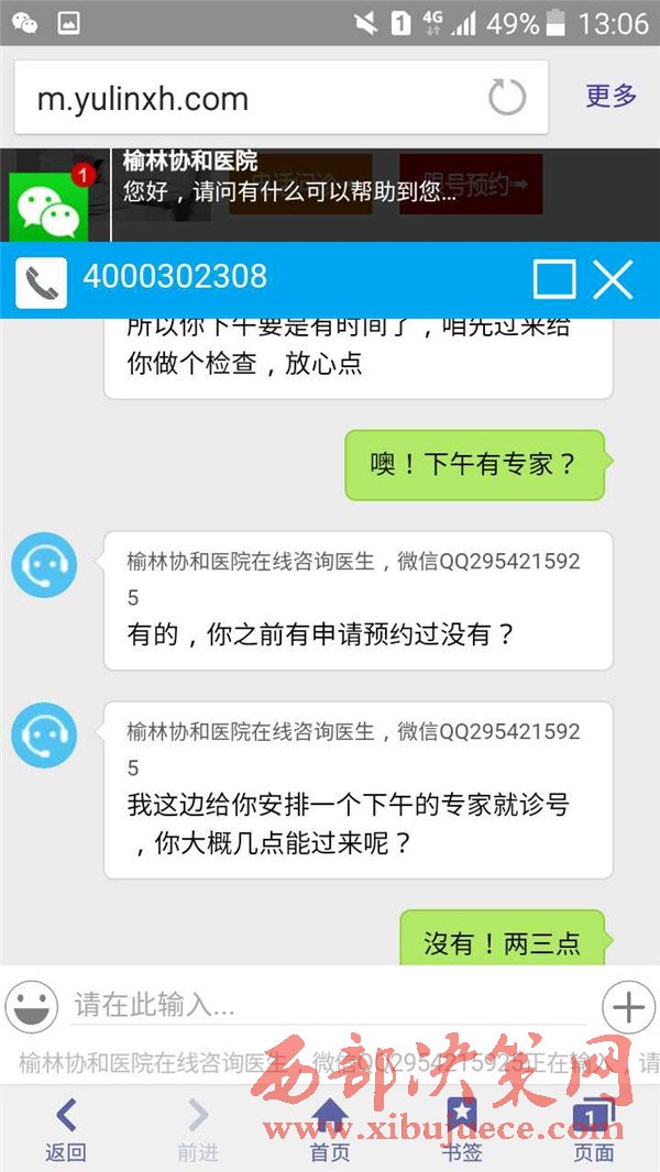 西部決策網(wǎng)-西部大開(kāi)發(fā)訊(記者 云鵬 實(shí)習(xí) 馬勇)“無(wú)病說(shuō)成有病,小病說(shuō)成大病,這種騙人的醫(yī)院應(yīng)該趁早關(guān)門!”提起在榆林協(xié)和醫(yī)院看病的經(jīng)歷,來(lái)榆林出差的宋先生就氣不打一處來(lái)。3月11日,宋先生因自己的下半身有點(diǎn)不舒服,便在網(wǎng)上查詢到榆林協(xié)和醫(yī)院是一家專業(yè)男科醫(yī)院,隨機(jī)預(yù)約掛號(hào)。在經(jīng)過(guò)醫(yī)院專家診斷后,宋先生的病情很嚴(yán)重,要想徹底治療必須做手術(shù)。最終在朋友的指導(dǎo)下,去大醫(yī)院檢查,結(jié)果卻診斷為僅僅是普通炎癥,無(wú)需治療。