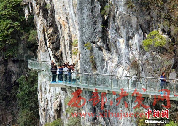 廣西最長(zhǎng)玻璃棧道建在崖壁上最高懸空60米