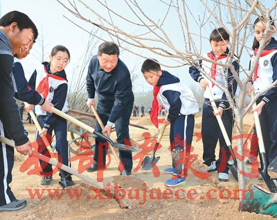 中共中央總書記、國家主席、中央軍委主席習(xí)近平29日上午在參加首都義務(wù)植樹活動時強(qiáng)調(diào),植樹造林,種下的既是綠色樹苗,也是祖國的美好未來。要組織全社會特別是廣大青少年通過參加植樹活動,親近自然、了解自然、保護(hù)自然,培養(yǎng)熱愛自然、珍愛生命的生態(tài)意識,學(xué)習(xí)體驗綠色發(fā)展理念,造林綠化是功在當(dāng)代、利在千秋的事業(yè),要一年接著一年干,一代接著一代干,擼起袖子加油干。