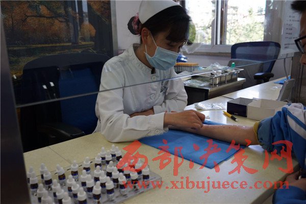 4月11日,北京大學世紀壇醫(yī)院變態(tài)反應科化驗室醫(yī)務人員在給患者做過敏源檢測。今年3月以來,這個科室就診人數(shù)從平時的日均100多人猛增到300多人。新華網(wǎng)韓家慧攝