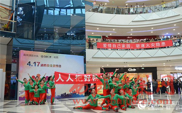 4月17日上午,在哈西萬(wàn)達(dá)廣場(chǎng)以小虎隊(duì)經(jīng)典歌曲《愛》為背景音樂的舞蹈拉開了哈爾濱市消防支隊(duì)南崗大隊(duì)2017年“4·17”消防宣傳日活動(dòng)的序幕。舞蹈的表演者全部為南崗大隊(duì)的消防官兵,歡快的樂曲和官兵們整齊的舞蹈動(dòng)作吸引了市民紛紛駐足觀看宣傳活動(dòng)。