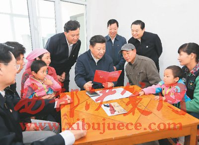 2016年8月23日上午,習(xí)近平在青海省海東市互助土族自治縣五十鎮(zhèn)班彥村村民呂有金家察看《扶貧手冊》,了解扶貧措施落實(shí)情況。