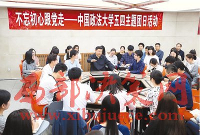 5月3日,中共中央總書記、國家主席、中央軍委主席習(xí)近平來到中國政法大學(xué)考察。這是習(xí)近平在學(xué)生活動(dòng)中心參加民商經(jīng)濟(jì)法學(xué)院本科二年級2班團(tuán)支部開展的“不忘初心跟黨走”主題團(tuán)日活動(dòng)。