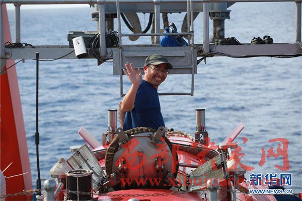 5月23日,新華社記者劉詩平走出“蛟龍”號(hào)載人艙。